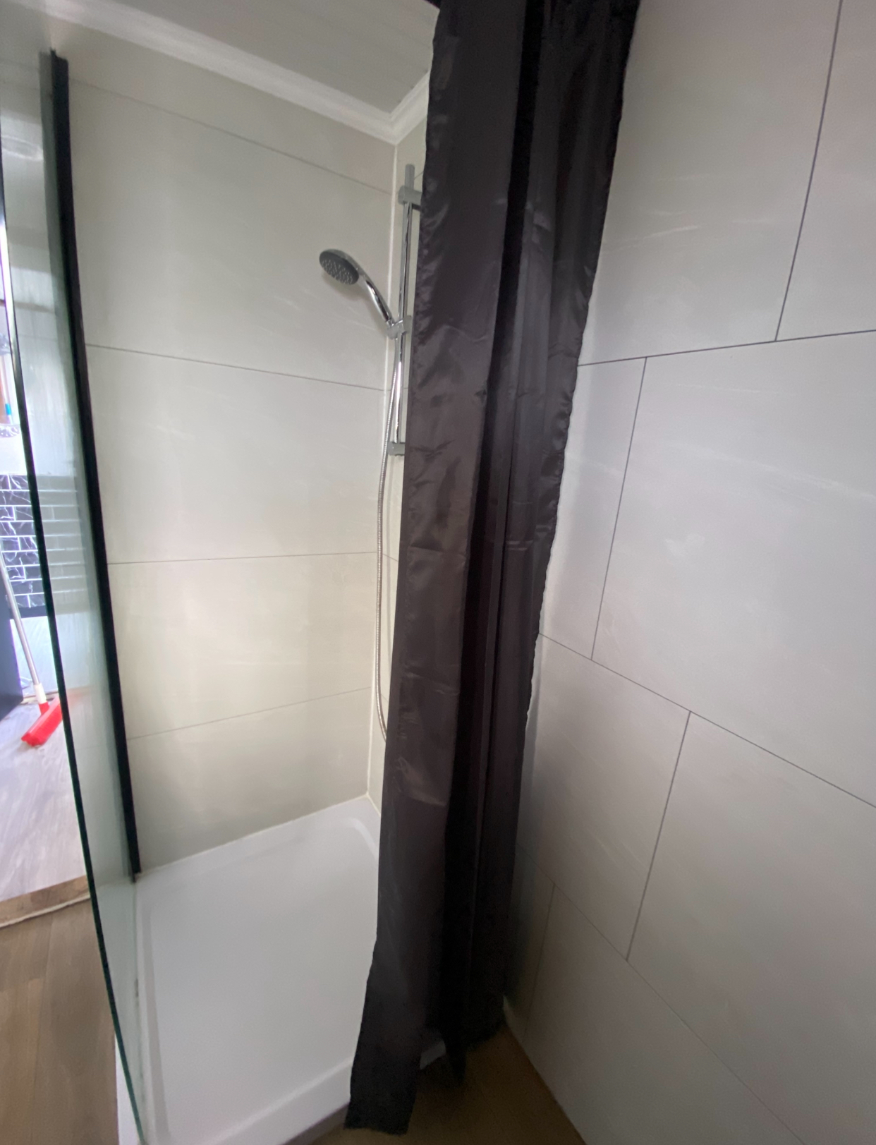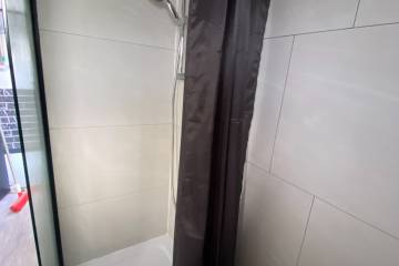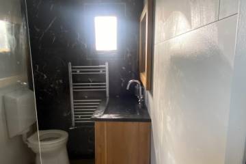 Badkamer: douchecabine, toilet, wastafelmeubel, afzuiger ,